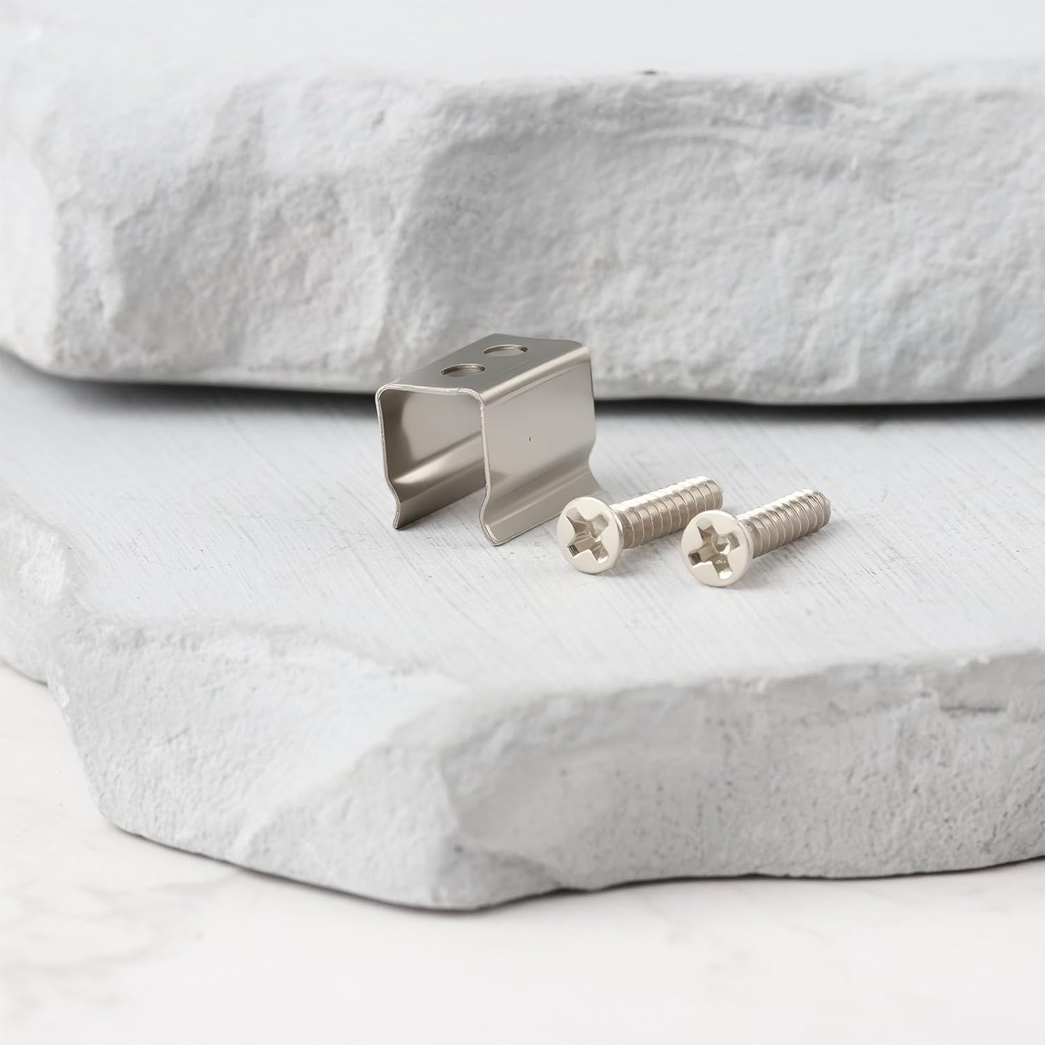 Item Descriptions: - They are widely used in private homes, offices, under counters, outdoors, restaurants and other areas. -Designed to securely attach LED strips with widths from 4.8 to 6 mm, this mount ensures a precise and stable installation. -The precise dimensions (10x6x7.5mm) and the 2.2mm mounting hole make these clips ideal for tight spaces while ensuring a slim and unobtrusive appearance. - Each clip comes with a matching screw, which simplifies installation and ensures a secure hold for your LED light strips. - Made of stainless steel for exceptional durability and corrosion resistance, making it ideal for indoor and outdoor applications. Package: 50 x mounting clips. 100 screws. Item specifications: Colour: silver. Material: stainless steel. Mounting hole: 2.2 mm. Suitable for: LED strips with a width of 4.8 mm to 6 mm.